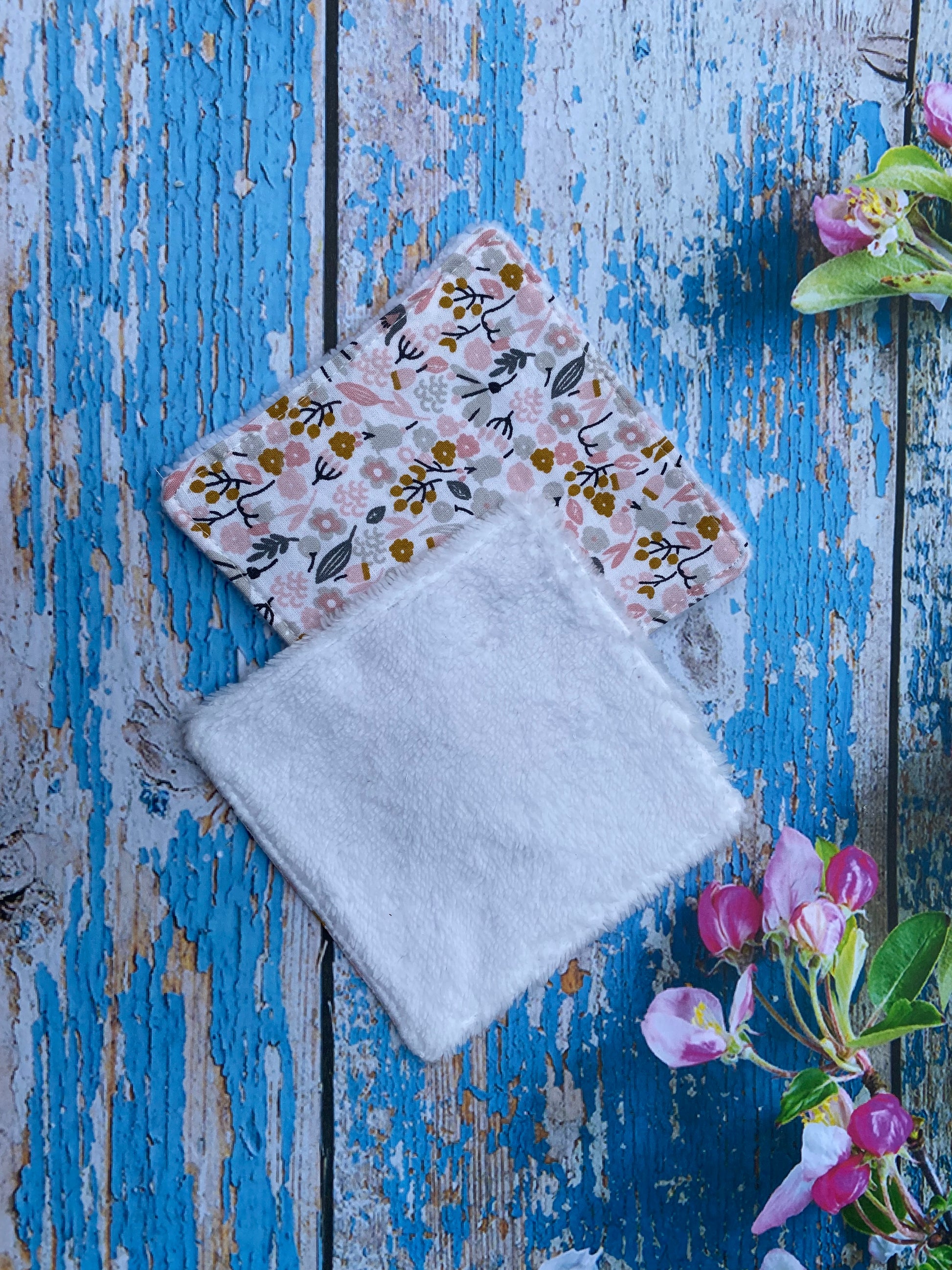 Lingette démaquillante coton imprimé recto , éponge bambou verso pour un usage quotidien oubliez les cotons jetables passez au zéro déchet !