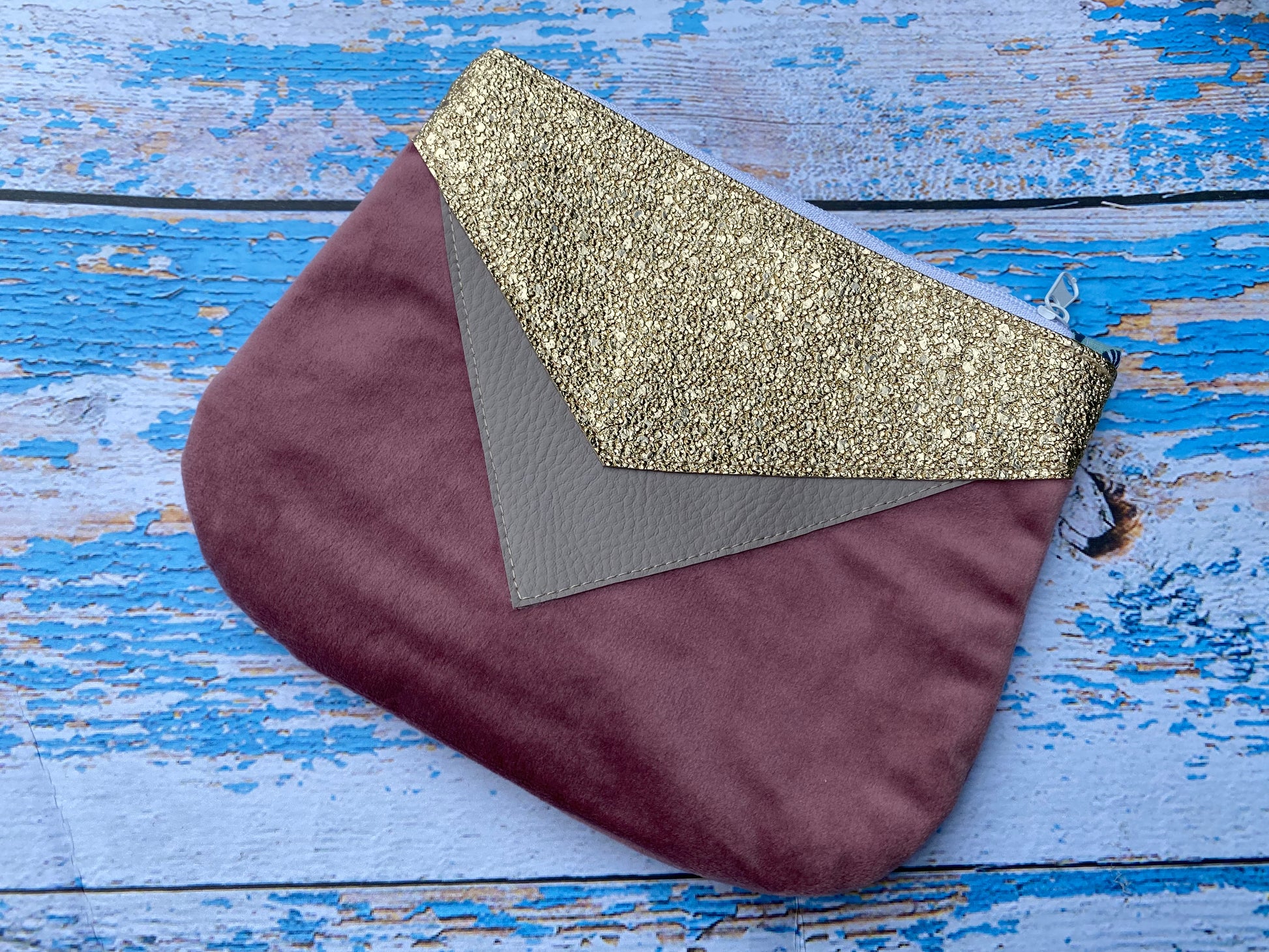 🌿 Extérieur : Velours vieux rose pour le côté chic , simili cuir couleur doré et couleur taupe